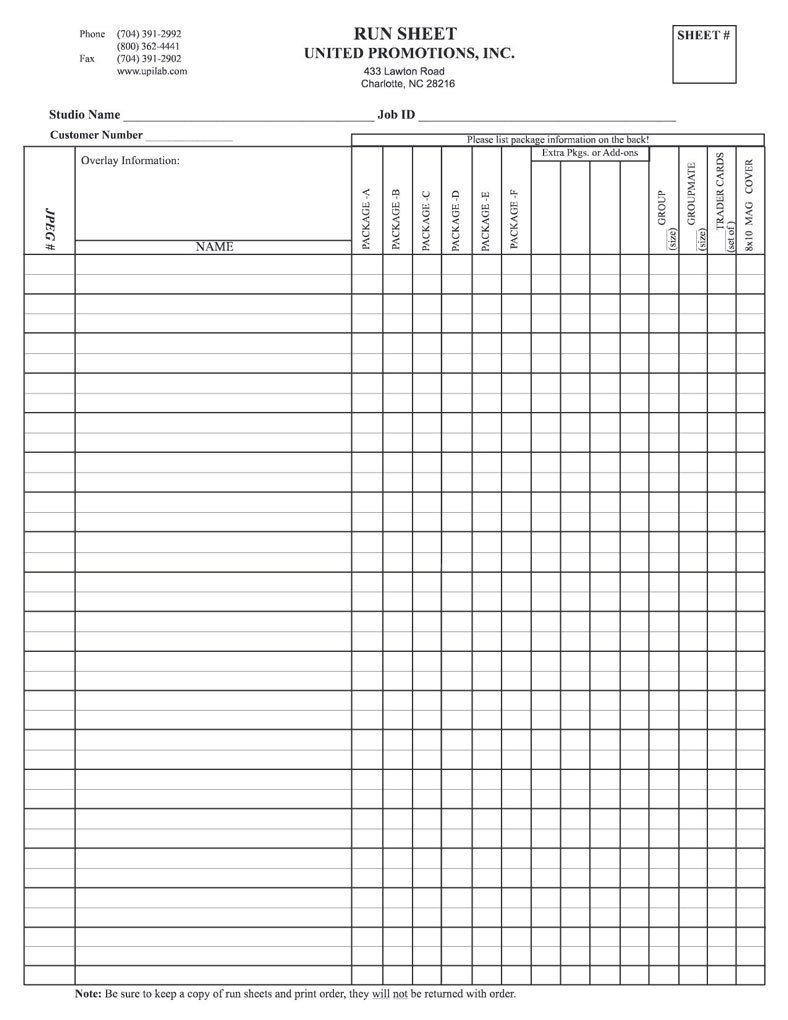 Run Sheets
