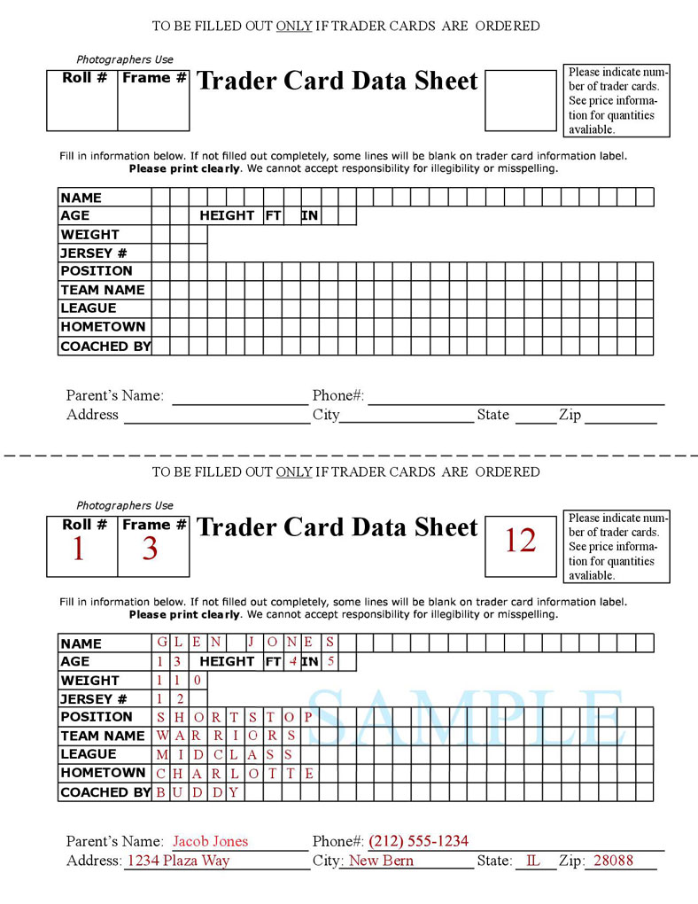 Trader Card Data Sheet