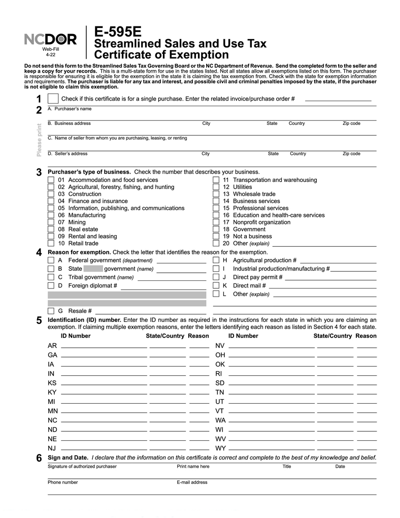 Sales Tax Certificate Form E-595E